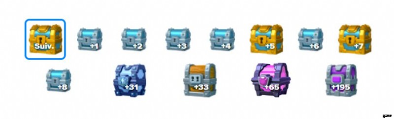Unter diesen Belohnungen gibt es 180 Silbertruhen, 52 Goldtruhen, 4 Zaubertruhen und 4 Riesentruhen. Die Magischen Truhen werden an den Positionen zwölf, vierundachtzig, einhundertzweiunddreißig und zweihundertdrei dieses Zyklus erhalten, während die Riesentruhen werden an den Positionen zweiundfünfzig, einhundertneunundfünfzig, einhundertneunzig und zweihundertdreißig freigeschaltet.