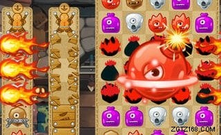 Ich nenne „Mega-Matches“ die Matches, die in Monster Busters zu einem besonderen Gegenstand führen:Das sind der Schlüssel zum Sieg und jede Menge Punkte. Achten Sie also beim Spielstart immer darauf, Kombinationen aus fünf Teilen in einer Reihe oder noch besser verschiedene Formen zu erstellen – wie die T- oder L-Form, für den Candy Blaster oder die Megabombe.