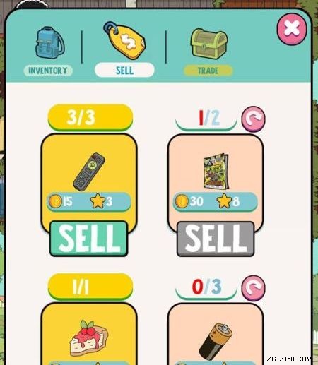 Wenn das Inventar voll wird oder du zusätzliches Geld für einen der wirklich teuren Gegenstände im Spiel benötigst, kannst du einige der gesammelten Gegenstände direkt verkaufen, indem du auf Gegenstände – Verkaufen tippst.