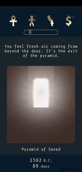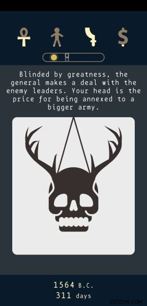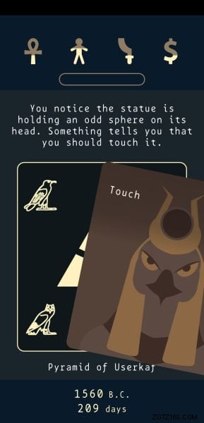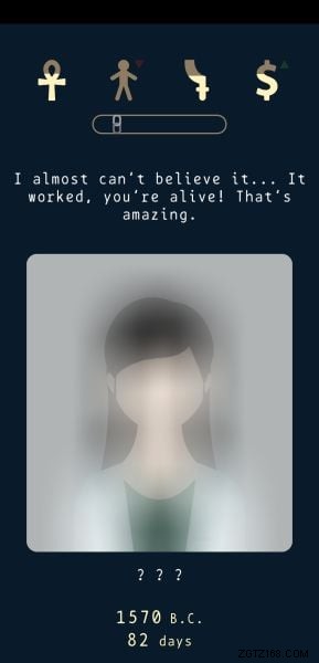 Um Entscheidungen zu treffen, können Sie nach rechts oder links wischen und sie wirken sich auf eine Ihrer vier Statistiken auf eine bestimmte Weise aus. Der Haken dabei ist, dass man nie weiß, ob es positiv oder negativ ist, aber wenn man logisch darüber nachdenkt, könnte man wahrscheinlich richtig erraten, welche Statistiken positiv und welche negativ beeinflusst werden.