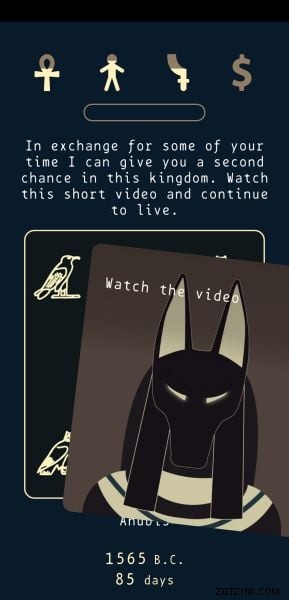 Wenn Sie das Gefühl haben, dass das Spiel zu schwierig für Sie ist, um mit bloßen Entscheidungen fertig zu werden, dann gehen Sie zum Shop und für ein paar Dollar können Sie das Auge von Ra, das Herz von Anubis oder einen Saphirfisch kaufen. Wenn Sie kein Fan von Werbung sind (auch wenn dieses Spiel nicht viel hat), können Sie sich dafür entscheiden, sie zu entfernen.