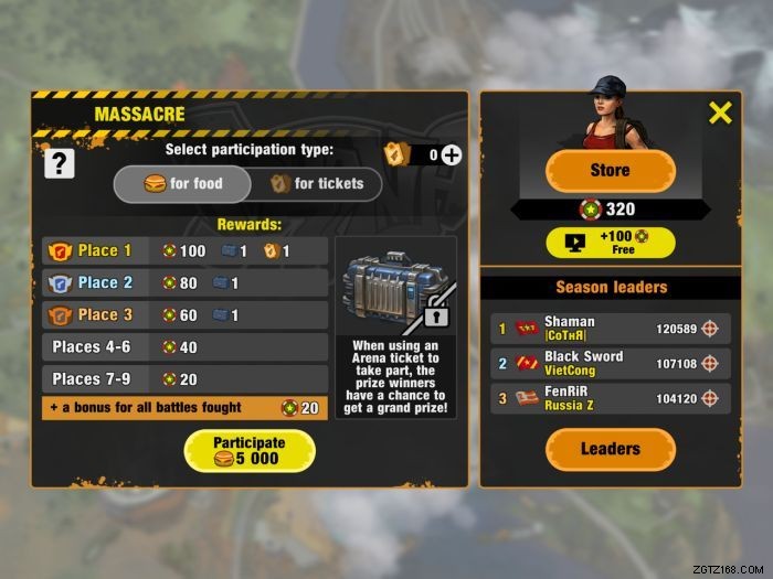 Massaker von Zero City:So erhalten Sie Arena-Tickets