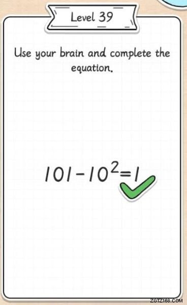 F:Verwenden Sie Ihr Gehirn und vervollständigen Sie die Gleichung. (101 – 102 =1)