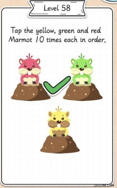 F:Tippen Sie nacheinander jeweils 10 Mal auf das gelbe, grüne und rote Murmeltier.