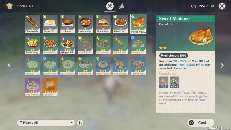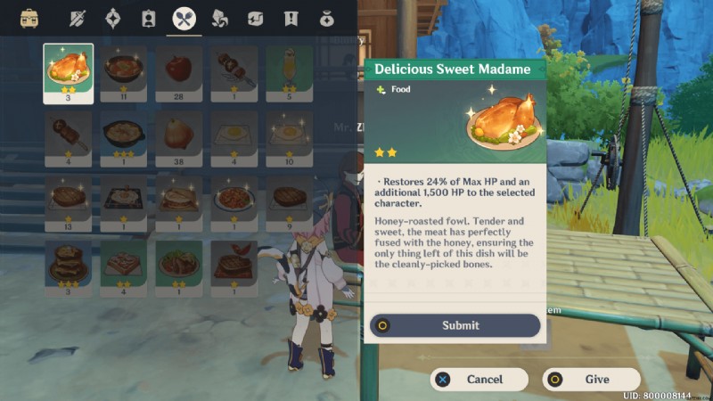 Das Gericht, nach dem Mr. Zhu sucht, ist „Sweet Madame“, die Spieler haben seit Beginn des Spiels Zugriff auf dieses Gericht.