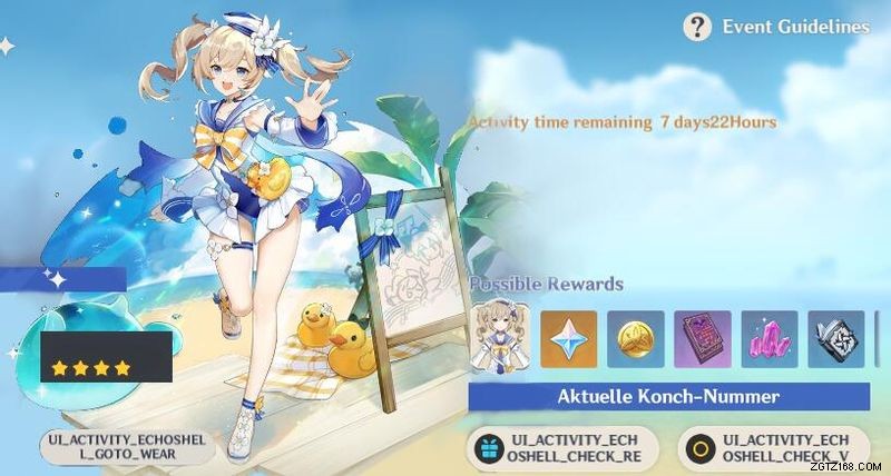 Laut Data-Mining-Informationen wissen wir, wie man Barbaras Summertime Sparkle-Skin erhält. Es ist eine kostenlose Belohnung in einem Event namens Echoing Narration . Ähnlich wie andere Genshin Impact Events können Sie die kostenlose Belohnung beanspruchen – dieses Mal rund um Barbaras Summertime Sparkle-Skin, indem Sie aktiv an dem Event teilnehmen und verschiedene Ziele erreichen.