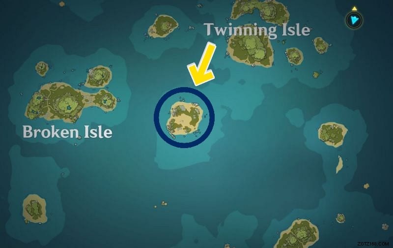 Den verfügbaren Informationen zufolge befindet er sich auf der mittleren Insel rechts von Broken Isle.