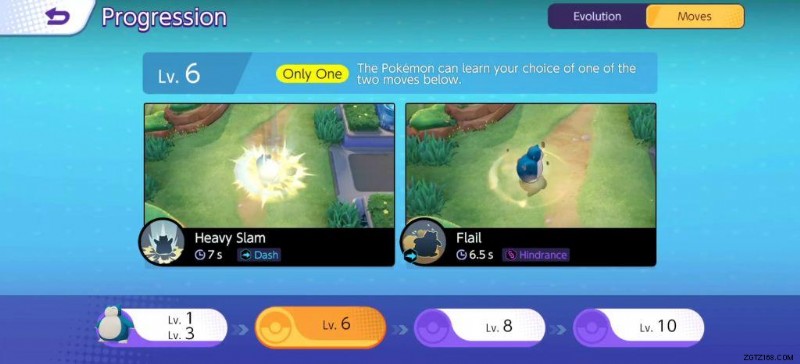 - Tackle (6s Dash): Lässt den Benutzer mit dem Bauch zuerst nach vorne stürmen, Schaden an gegnerischen Pokémon im Wirkungsbereich verursachen und ihre Bewegungsgeschwindigkeit für kurze Zeit verringern.