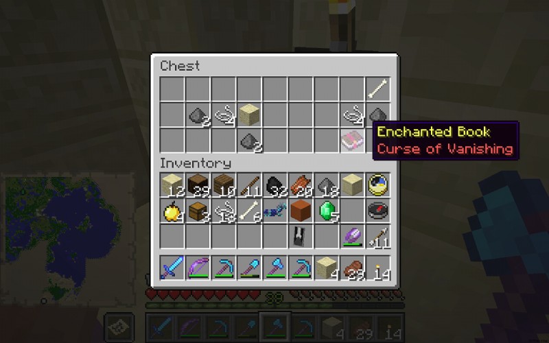 Manchmal werden die Spieler in Minecraft mit dem Fluch des Verschwindens konfrontiert. Sie müssen es während aller Reisen immer im Kopf behalten, da nach dem Tod eines Charakters seine Gegenstände im Inventar vollständig aus dem Spiel verschwinden.