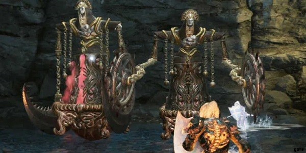 Diese seelenlosen Monstrositäten sind genauso bedrohlich wie ihre Gegenstücke in der Oberwelt, nur stärker und es gibt zwei von ihnen in einer kleinen Höhle mit genügend Platz zum Manövrieren und nicht viel für Spieler, um ihren kombinierten Angriffen auszuweichen. Diese seelenlosen Monstrositäten können Spieler auf verschiedene Weise töten. Die Wheel-Variante verwendet ein paar scharfe Spinnradklingen, die Spieler würfeln und schnellen Blutverlust verursachen können, während die Swinging Sickle-Variante eine täuschend hohe Reichweite hat, an die man sich etwas gewöhnen muss. Abgesehen von diesen Problemen haben sie auch einen verheerenden Greifangriff, der einen Teil der HP abbauen kann, ohne dass der Schaden verringert werden kann, sobald der Greifvorgang erfolgt.