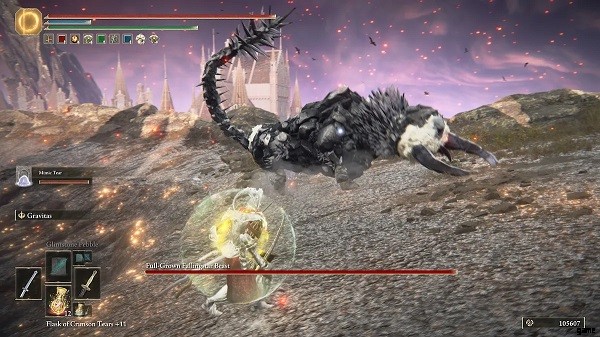 Hinzu kommt, dass diese intensive Skorpion-Stier-Kreatur auch aufladbare und nachfolgende Schwerkraftangriffe hat, die massiven Schaden verursachen und Spieler für eine ganze Weile lahmlegen, wenn sie darin gefangen werden. Als Nahkämpfer kann ich bestätigen, dass es schwierig ist, schnell genug aus der Reichweite seiner Gravitationsangriffe zu kommen, es sei denn, man kennt die Tells vorher.