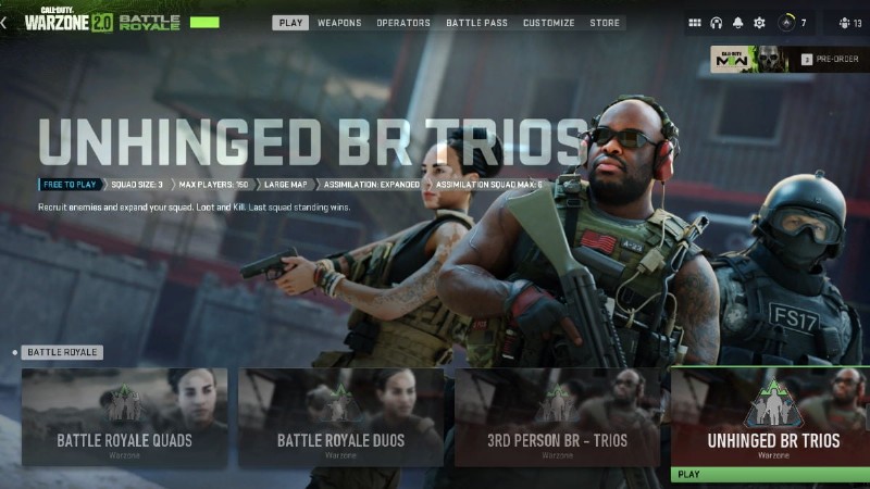 Warzone 2 ist nicht das erste Spiel, bei dem Spieler eher dazu neigen, einen bestimmten Spielmodus zu spielen als die anderen. Beispielsweise spielen die meisten Warzone-Spieler entweder Quads oder Solos. Wenn Sie sich also in Duos oder Trios anstellen, werden Sie feststellen, dass sich die Lobby nicht füllt und Matches keine Startprobleme haben. Wir empfehlen daher, den Spielmodus zu ändern.