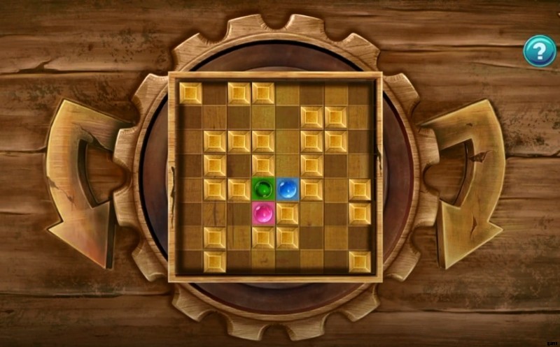 - Sammle zuerst ein Fotostück vom Boden und tippe auf die Kiste mit einem Minispiel, bei dem es dein Ziel ist, den blauen Ball auf das blaue Quadrat zu ziehen, indem du einfach die Kiste drehst.