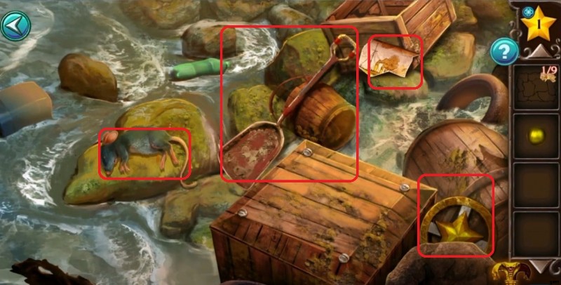 - Durchsuchen Sie die Umgebung, um eine tote Ratte, eine Schaufel, eine Form und ein Fotostück zu entdecken.