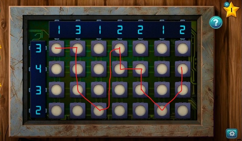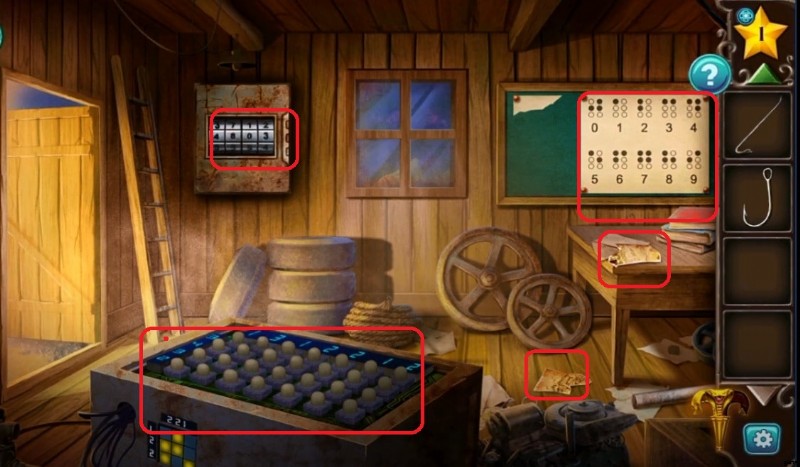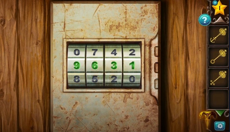- Tippe auf die Kiste, die an der Vorderwand befestigt ist und mit einem Schließfach gesichert ist. Geben Sie den Code (9631) ein um es zu öffnen und spielt ein Minispiel, bei dem Sie feststellen, dass die Zifferntasten geändert wurden und ihre Eingabe falsch ist. Ihr Ziel ist es also, die richtigen Zifferntasten herauszufinden und den Code einzugeben.