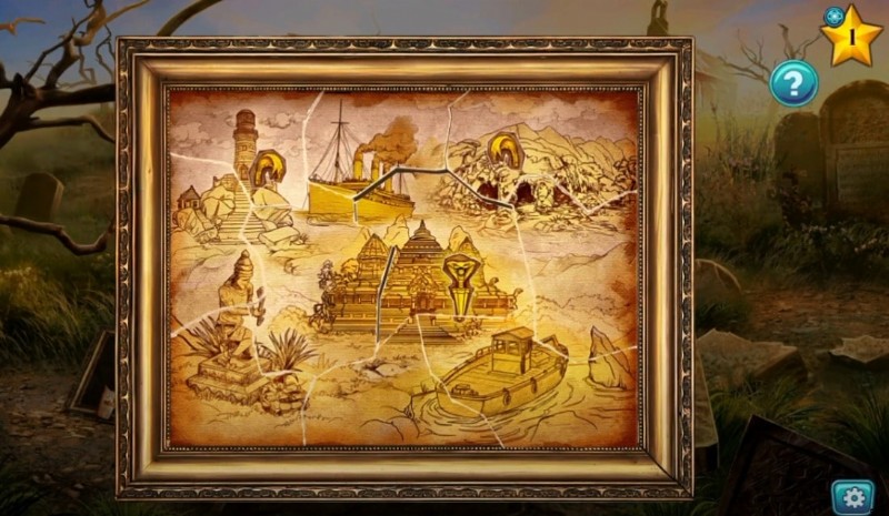 - Nachdem Sie Gegenstände gesammelt haben, sollten Sie zum Friedhof zurückkehren und beginnen, die linke Seite des Grabes auszuheben, um einen Rahmen zu entdecken, in dem Sie alle Fototeile hinzufügen müssen, um das Gemälde zu vervollständigen.