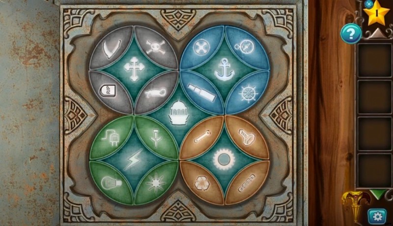 Gehen Sie in die Nähe des Leuchtturmtors und versuchen Sie, die richtige Reihenfolge der Steine zu finden, um die Tür zu öffnen. Wenn du es gefunden hast, tippe auf die Steine, um das Tor zu öffnen und hineinzukommen.
