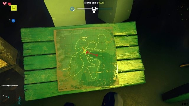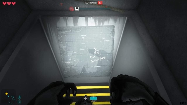 Vielleicht möchten Sie für diesen nächsten Teil tief durchatmen, weil wir unter Wasser gehen (eigentlich gibt es nichts, worüber Sie sich Sorgen machen müssten, Ihr Charakter muss anscheinend nicht atmen, aber achten Sie auf diesen sicheren Kreis, Sie werden sterben, wenn Sie es tun sind außerhalb davon) Wenn Sie für eine Weile unter Wasser reisen, erhalten Sie einen Dacheingang zu einer Unterwassergebäudestruktur mit ziemlich vielen Räumen, und Sie erhalten dies ... einige goldene Statuen. Ich vermute, das sind die zuvor erwähnten „Golden Boys“. Die einen sitzen, die anderen stehen, einer hält ein Radio in der Hand und es scheint auch einen Waffenständer zu geben? Ich bin mir nicht sicher. All dies ist interessant, aber nichts ist interessanter als eine zweite Karte mit einem weiteren Hinweis.