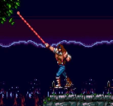 Johns Standardangriff am Boden und in der Luft ist ein Vorwortangriff des Vampirmörders, der hinter seinem Kopf beginnt und ihn schnell auspeitscht. Er kann Feinde und Kerzen angreifen, während die Animation die Peitsche hinter seinem Kopf zeigt, da die Peitsche während des größten Teils der Animation aktiv bleibt. Sie können die Angriffsanimation anhalten, damit die Peitsche noch eine Weile draußen bleibt.