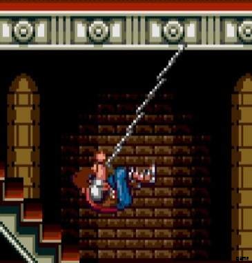 Wenn Sie Ihre nach oben gerichtete Diaginalpeitsche ausführen und die Spitze auf eine Decke trifft und Sie sie weiterhin halten, wird John mit seiner Peitsche schwingen. Sie können Up und Down gedrückt halten, um seinen Abstand von der Decke zu ändern. notwendig, um über einige Lücken im Schiefen Turm von Pisa zu springen.