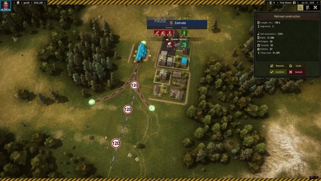 Sie können Kreuzungen in Railroad Corporation nur dann mit moderater Geschwindigkeit erreichen, wenn Sie mit der AUSSENSEITE einer Kurve mit moderater Geschwindigkeit verbunden sind.