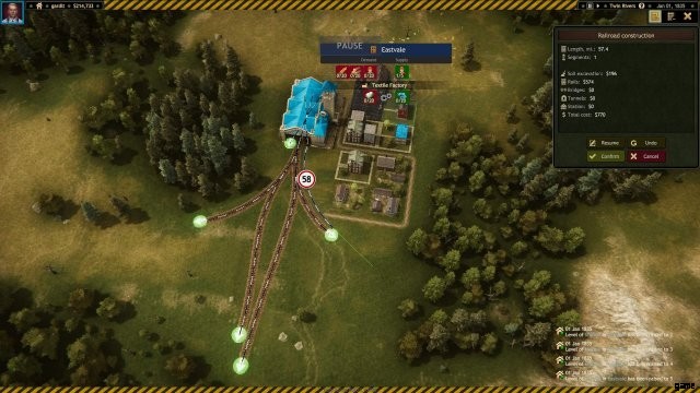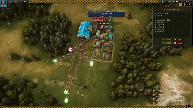 Mit der aktuellen Spielmechanik sind richtige Abzweigungen zwischen Doppelspuren noch nicht realisierbar. Also verwende ich Städte/Bahnhöfe als Verbindungspunkte.