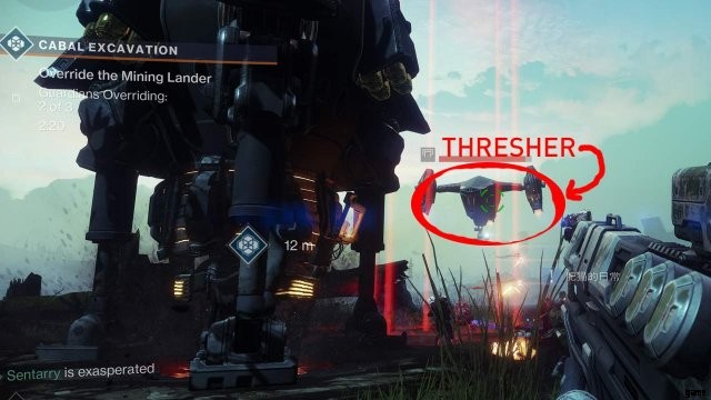 Irgendwo bei etwa 30% Fertigstellung erscheint ein roter Thrasher (Schiff). Schieß es ab. Das ist es. Töte jetzt den Schläger einer Kabale.