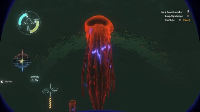 Zuerst müssen Sie eine der leuchtenden Quallen finden. Schwimmen Sie darauf zu und positionieren Sie sich direkt darunter. Dies ist der einzige Ort, der Sie nicht stechen wird. Verwenden Sie dann Ihr Jetpack, um direkt hineinzufliegen. Sie sollten bis zur Kopfhöhle durchgehen.