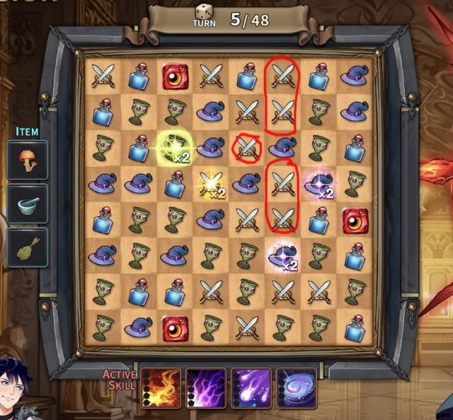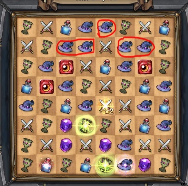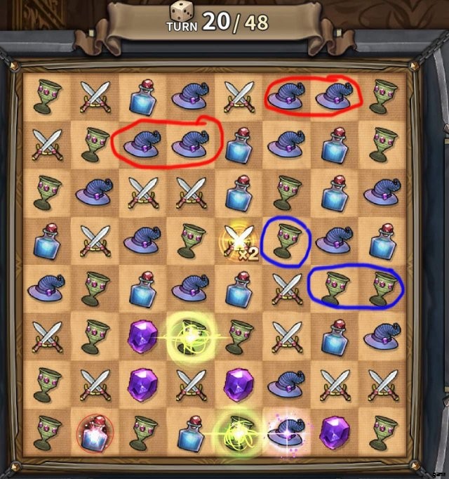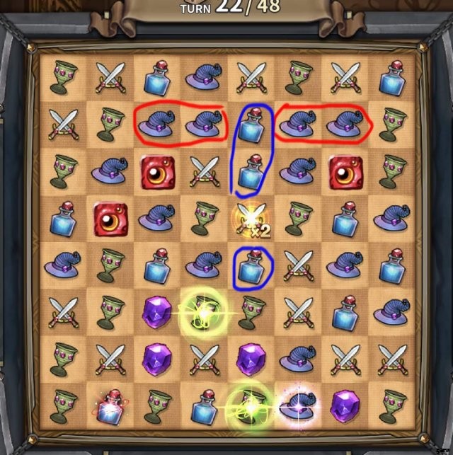 Wenn in diesem Beispiel die Heilblöcke zerstört werden, würde ich AAOAA mit den magischen Blöcken bekommen.