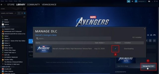 Versteckt für jeden Beta-Besitzer auf dem PC ist ein Stück DLC, das Square Enix als „Marvel’s Avengers Beta:High Resolution Texture Pack“ bezeichnet. Aktivieren Sie es, um sicherzustellen, dass Sie vom ersten Tag an die beste Grafikqualität erhalten, aber seien Sie sich bewusst, dass es mit einem zusätzlichen 20-GB-Download kommt (wer weiß, wie viel mehr für das vollständige Spiel, wenn es veröffentlicht wird!).