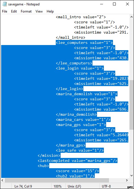 Sobald Sie dort sind, finden Sie eine sehr offensichtlich mit „Spielstand“ gekennzeichnete Datei, in der Sie die Werte Ihres Spielstands bearbeiten können, um Ihr Spiel zu ändern.