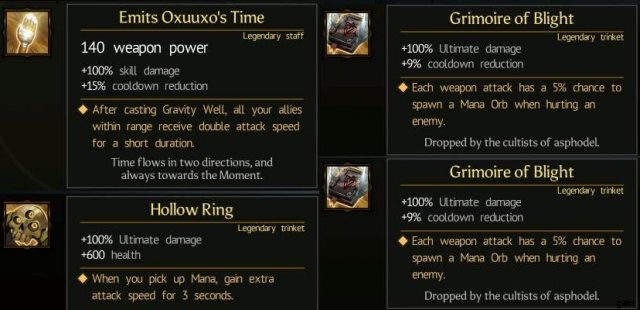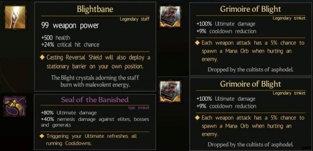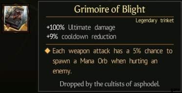 Der dritte Angriff in der Magier-Basisangriffskette und das Schmuckstück Grimoire of Blight.