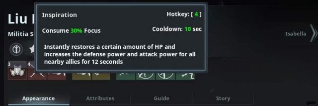 Wie Sie der passiven Fähigkeit entnehmen können, nimmt Liu Bei alle 2 Sekunden die alliierten Truppen in Höhe von 2 Personen weg. Aber was seine Fähigkeit betrifft, die feindliche Armee wegzunehmen. Er nimmt 1 bis 4 Personen unter seine Kontrolle. und wenn es keine Truppen gibt, die er erobern kann, wird er 2 Krieger aus seiner Armee spawnen.