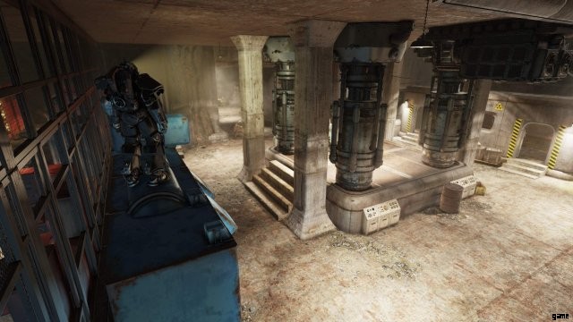 Wenn ich mich entscheide zu stehen, stehe ich normalerweise unter dem blauen Generator, der auf dem Bild gezeigt wird. Es gibt mir ausreichend Platz, um zu sehen, was auf beiden Seiten passiert, und alle Ghule zu erledigen.