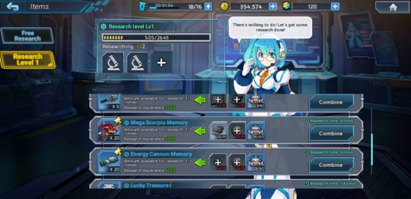 Ein einzigartiges Feature von Mega Man X Dive ist Ihre Fähigkeit, Ihre eigenen Splitter zu erstellen und sich nicht ausschließlich auf das Ziehungsglück aus der Kapsel zu verlassen. Über das Labor, auf das Sie über sein Symbol im unteren rechten Bereich des Startbildschirms zugreifen können, können Sie unter anderem bestimmte Materialien kombinieren, um die Forschung für die von Ihnen benötigten Splitter zu initiieren. Sobald Sie nicht mehr in der Lage sind, ein Level zu durchlaufen, sollten Sie in das Labor schauen und nach den Materialien suchen, die Sie für eine Forschung benötigen, die Sie durchführen möchten. Fühlen Sie sich frei, etwas zusätzliche Energie in die Landwirtschaft für die benötigten Materialien zu stecken.
