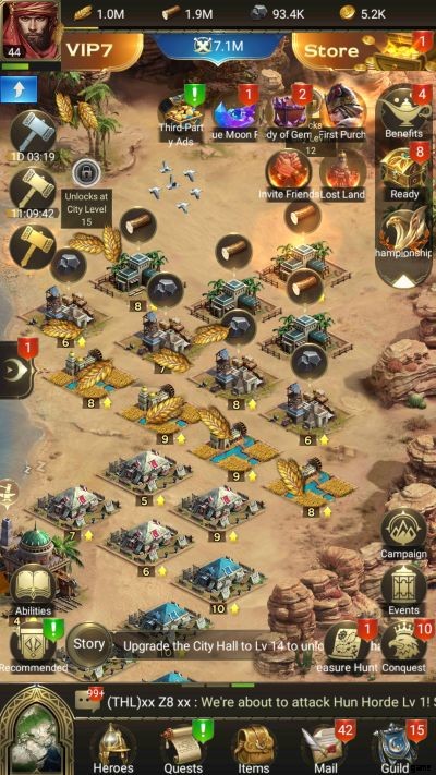 Als Anführer Ihrer Stadt werden Ihnen Story-Herausforderungen gestellt, die sich normalerweise darum drehen, Bedrohungen für den Frieden zu beseitigen, Rebellen zu verfolgen und Ihre Stadt zu einer respektierten Persönlichkeit in einer Ära endloser Machtkämpfe zu machen. Während dieser Reise bietet das Spiel ständig Anleitungen zur Benutzeroberfläche, die Ihnen bei der Bewältigung interner Aufgaben helfen. Was externe Aktionen angeht, kannst du dich einer Gilde anschließen, um dich mit Gleichgesinnten zusammenzuschließen, um deine Erfolgschancen in der tückischen Wüste zu verbessern.