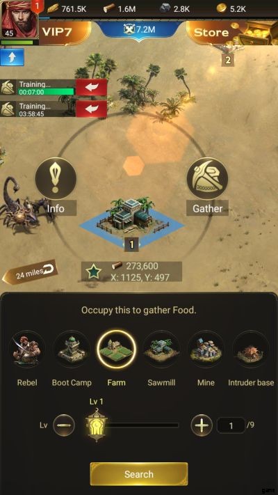 Eine der grundlegenden Aufgaben, die Sie in der Tutorial-Phase kennenlernen werden, ist der Kampf gegen Rebellen, der als angenehme Pflicht behandelt werden muss. In der Wüste wimmelt es nur so von Rebellen, die bereit sind, erledigt zu werden, und ihre Eliminierung wird dir garantiert Spieler-EP, Helden-EP, Ressourcen und Zeit-Booster einbringen.