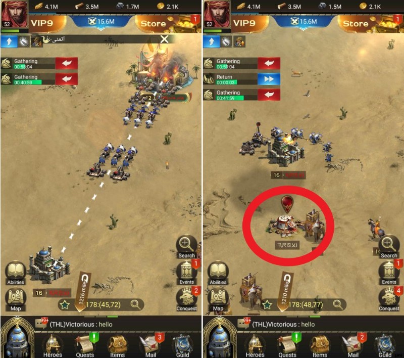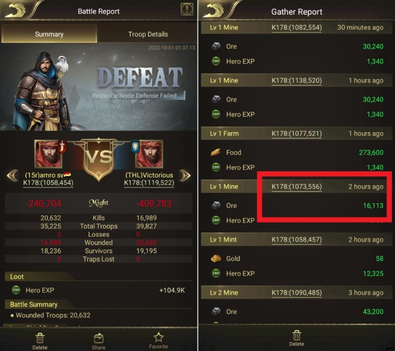 1. Go to the resource node and pull out your troops. You have to do this quickly so the incoming attackers won’t catch your heroes. If you were not able to recall troops on time and they are defeated, the node gets taken over. Either way, observe the attacker.