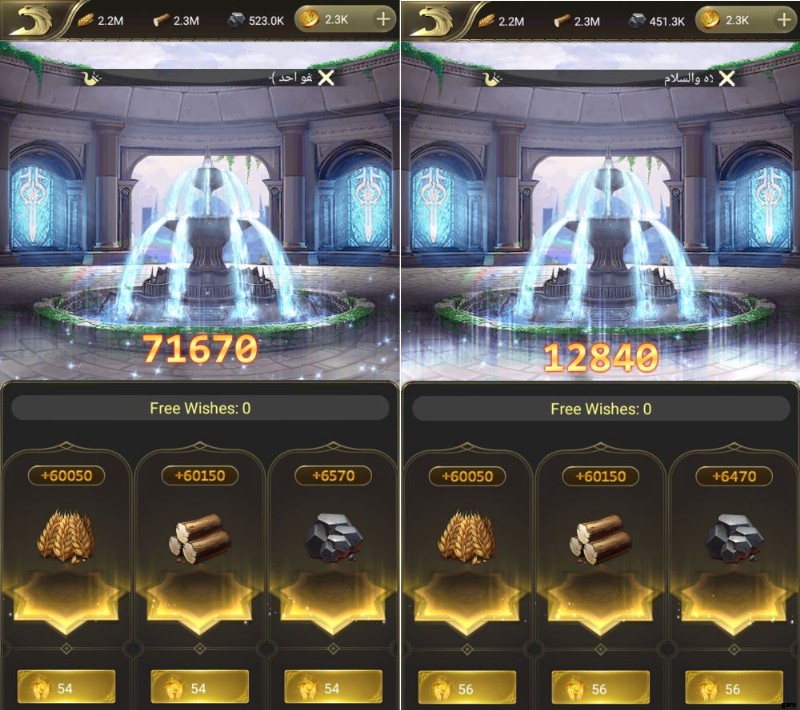 TIPP: Es mag sinnvoll erscheinen, Ihre Wünsche für Nahrung, Holz und Erz gleichmäßig zu verteilen. Wir empfehlen jedoch, nur Erz zu wünschen, da die Ressourcenpakete für Erz in allen Belohnungspunkten eine viel seltenere Beute sind. Wenn Sie 5 oder mehr Wünsche verwenden, empfehlen wir dringend, sich für einen Sammelwunsch zu entscheiden, da der Bonusbetrag im Vergleich zum Wachstum größer ist, wenn Sie einen Wunsch nach dem anderen wünschen.