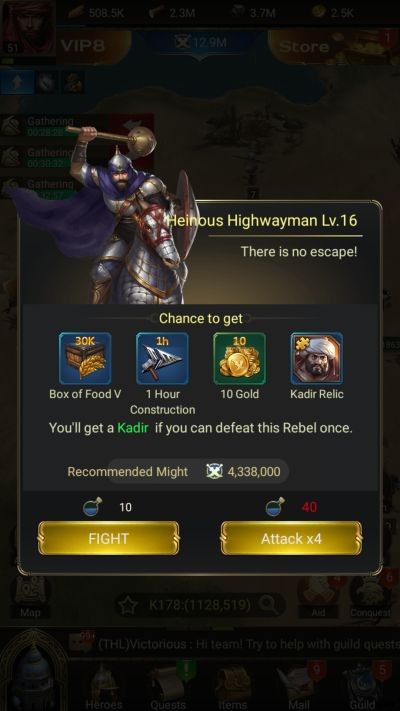 Es gibt zwei Möglichkeiten, einen Rebellen zu bekämpfen, den Einzelkampf und den X4. In Bezug auf den obigen Screenshot können Sie sehen, dass die X4-Option die effizientere Wahl ist. Trotzdem ist es auch nicht schlecht, sich für einen Einzelkampf zu entscheiden, besonders wenn Sie die Verwendung von Energie verteilen möchten, um mehr als 5 Helden EXP zu geben. Basierend auf über 400 Rebellenkämpfen haben wir schnelle Fakten aus unserer Schlussfolgerung über die beiden Kampfoptionen zusammengestellt.