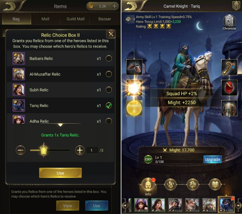 TIP: Unlike in other games where you can gear up the heroes you collected, Conquerors:Golden Age has no shop that directly sells hero equipment nor the crafting materials needed to upgrade them. That is why when you hit a campaign plateau, it is smarter to dedicate your Stamina to hunt for gears instead of repeatedly trying a stage you’re stuck at, especially when your best team’s Might have not dramatically increased yet.