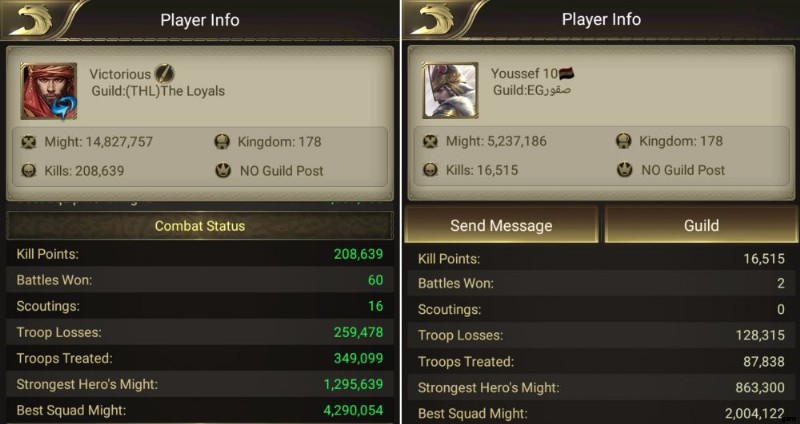 Fighting maybe cool but it is generally not advisable if it will likely be a one-sided encounter. If you’re new to the game, cannot speak Arabic (the main language used in the game), and have not checked the social network portals of Conquerors:Golden Age, it will take a while to know which guilds you should avoid conflict with.
