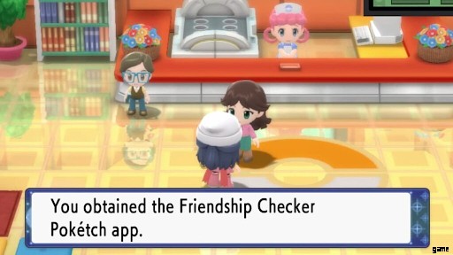 Sobald Sie den Pokétch haben, können Sie verschiedene Apps dafür erwerben. Mit einer dieser Apps können Sie die Freundschaftslevel jedes Pokémon in Ihrer Gruppe überprüfen. Sie können diese App in Eterna City erwerben. Sobald Sie das Pokémon-Center in Ihrer Stadt betreten, können Sie mit der braunhaarigen Frau in der Mitte des Raums sprechen. Sie wird dir den Freundschaftsprüfer für deinen Pokétch geben.