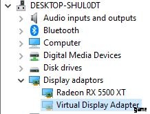 - 3. Klicken Sie auf „Virtual Display Adapter“ und bewegen Sie, sobald es hervorgehoben ist, Ihren Mauszeiger auf das rote Kreuz oben, das die Deinstallationsschaltfläche ist. Klicken Sie darauf und das wird jetzt entfernt.