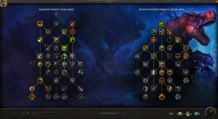 Wie bei den meisten Dingen in World of Warcraft wird es Wege geben, diese Talentbäume zu minimieren/maximieren . Fühlen Sie sich jedoch nicht zu sehr unter Druck gesetzt, während des Levelns nach Anleitungen zu suchen, da Sie Ihre Talente nach Lust und Laune ändern können – und es fallen keine Goldkosten oder ähnliches an. Spielen Sie damit herum, werden Sie kreativ und haben Sie Spaß. Es gibt eine Starter-Build-Option auch, wenn du keine Lust hast, dich während des Levelns darum zu kümmern, wie im obigen Bild für Bestienbeherrschung-Jäger gezeigt.
