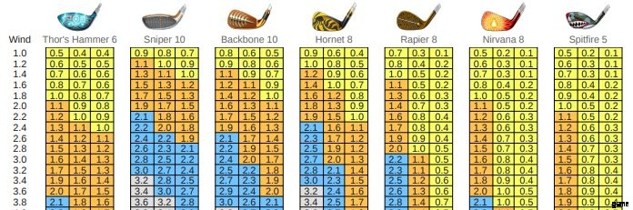 Wenn Sie anfangen, süchtiger nach dem Spiel zu werden, werden Sie schnell lernen, dass „Vermutungen“ nicht ausreichen. Sie müssen genauer sein, um wettbewerbsfähig zu sein. Geben Sie den Golf Clash-Windleitfaden oder die Windkarte ein. Es ist ein Diagramm, das zeigt, wie viel Sie für den Wind kompensieren sollten, basierend auf der Art des Schlägers, den Sie verwenden, und der Stärke des Windes. Darüber hinaus ist es dasselbe wie die Dope-Karten, die Langstrecken-Scharfschützen verwenden. Der Unterschied ist nur, dass dieser für Golfbälle ist, nicht für Kugeln.