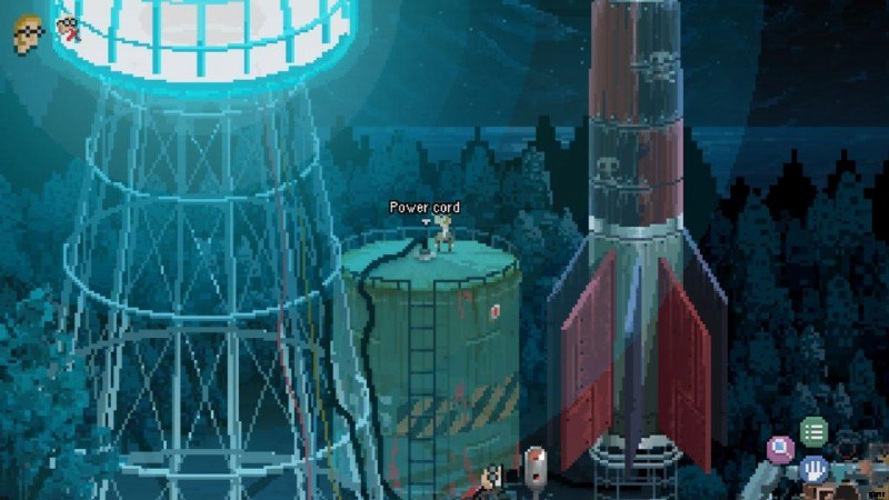 Gehe nach Norden zum Tempelbereich und klettere die Leiter links von der Rakete hinauf. Interagieren Sie mit dem Netzkabel. Gehen Sie die Leiter wieder hinunter, sobald das Netzkabel abgezogen ist.
