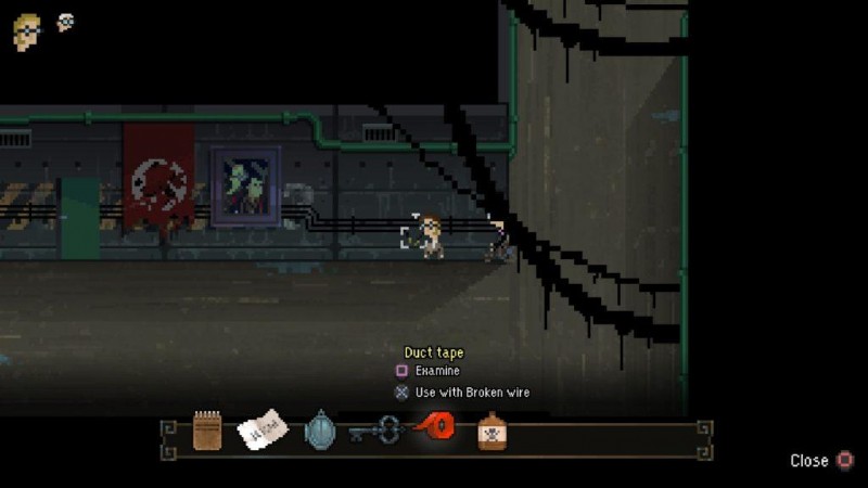 Kehren Sie in den Korridor zurück und gehen Sie zu dem unterbrochenen Draht. Verwenden Sie das Klebeband mit dem gebrochenen Draht.