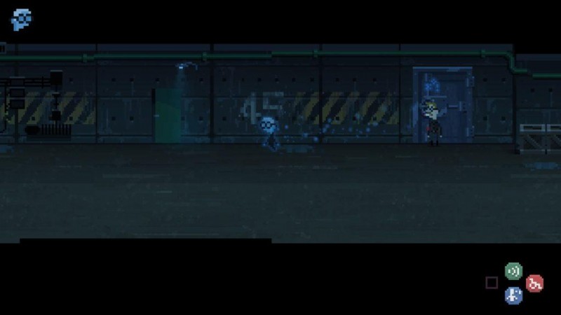 Aber zuerst müssen wir uns aus dem Bunker befreien. Die Tür, die nach draußen führt (ganz links im Korridor), ist elektronisch verschlossen, und ihre Steuerung befindet sich im Raum in der Nähe. Bevor Sie die Steuerung dort verwenden können, müssen Sie die Stromversorgung des Switches wiederherstellen.