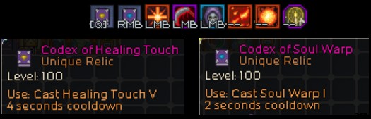 Verwenden Sie Codex of Soul Warp, um sich zu bewegen und den DR-Bonus unserer Stiefel zu aktivieren. Alternativ können Sie sich durch Glücksspiele mit Scrolls of Soul Warp eindecken und so effektiv alle klobigen Probleme von Warlock lösen. Schriftrollen haben keine Abklingzeit, wodurch Sie auch Codex of Healing Touch bei der automatischen Aktivierung verwenden können, wodurch Sie nahezu unsterblich werden.